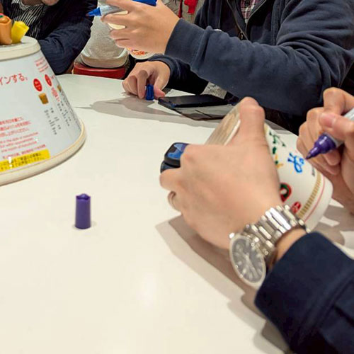 みんな自分で描いたカップに好きな具材を入れMYカップヌードル作りを楽しんでいました。