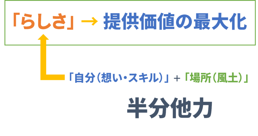 自分の「らしさ」と土地の「らしさ」を掛け合わせることで、唯一無二の価値が生まれます。